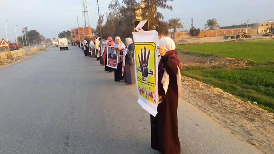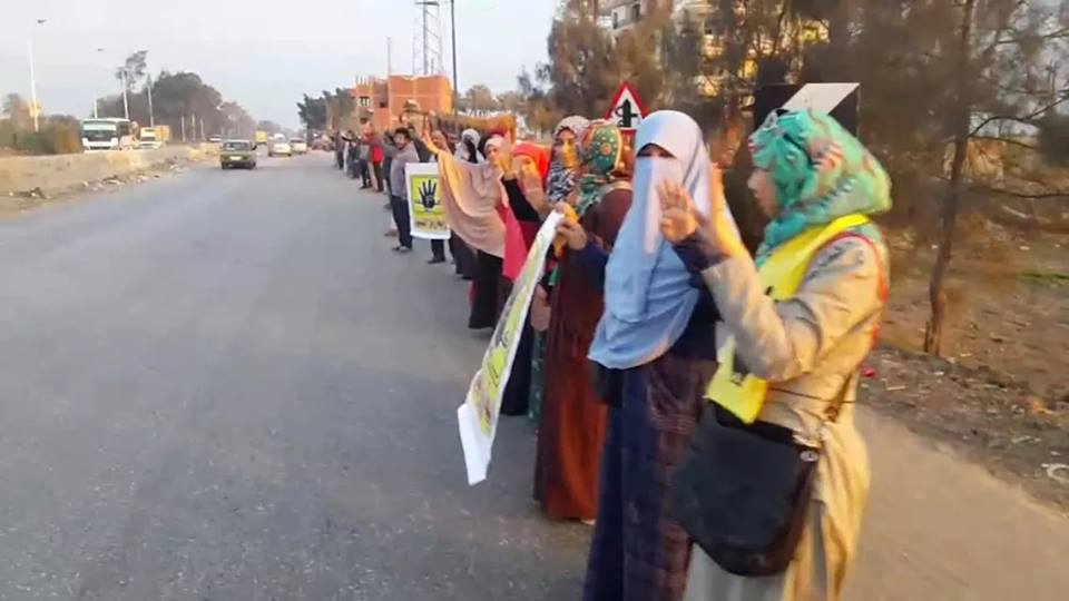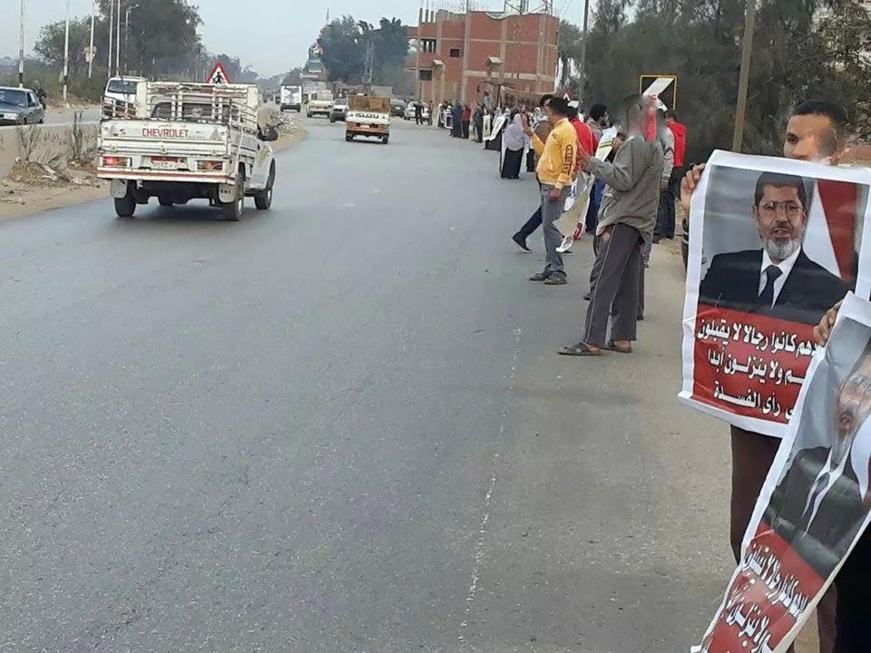 نظم رافضو الانقلاب العسكري في الشرقية، سلسلة بشرية عصر اليوم في الزقازيق، وذلك على طريق...