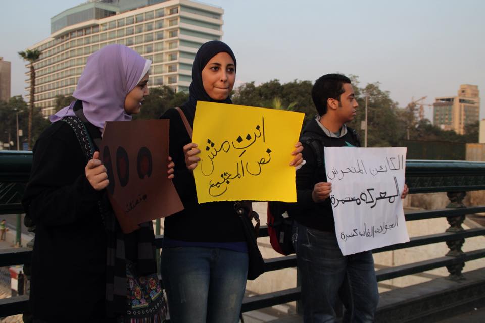صور| وقفة “ضد التحرش” أعلى كوبري قصر النيل