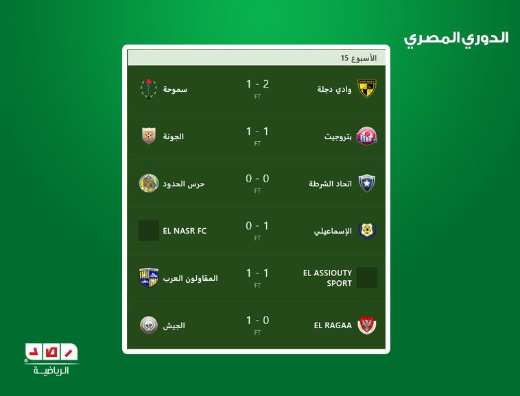 نقدم لكم نتائج مباريات الأسبوع الـ 15 من الدوري المصري الممتاز ، كاملة من إعداد" فريق رصد الرياضية " .