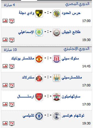 وفي باقي المباريات يحل إيفرتون ضيفا على هال سيتي، ويلتقي أستون فيلا مع كريستال بالاس، وكوينز بارك رينجرز مع سوانزي سيتي، ونيوكاسل مع بيرنلي، ووستهام مع وست بروميتش.