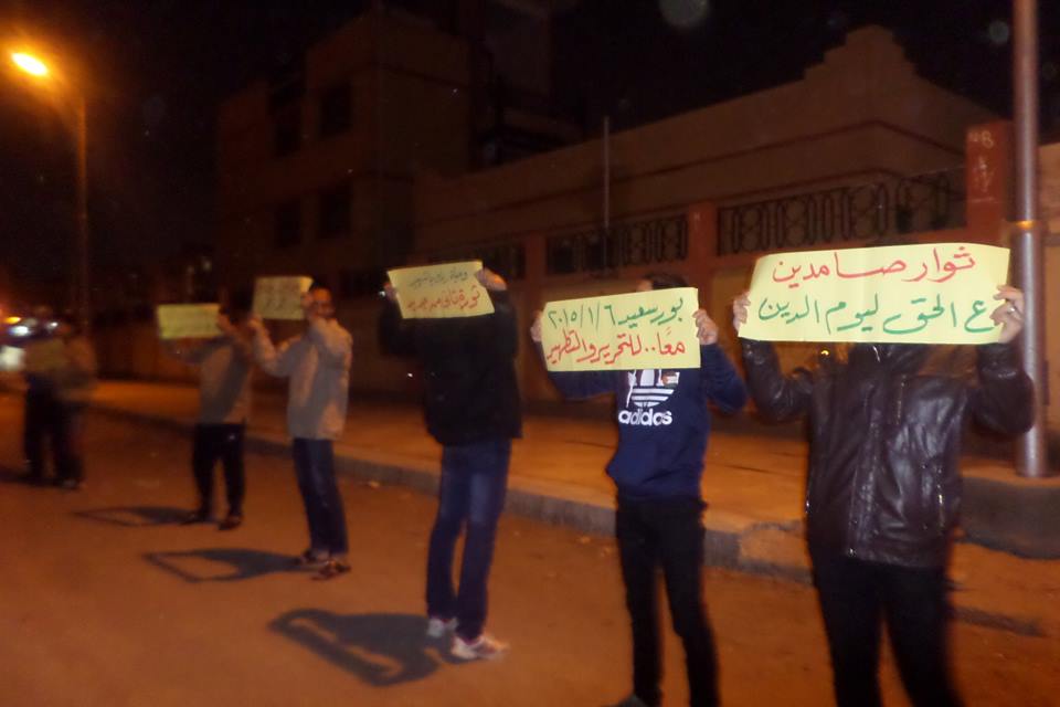 نظم أهالي "كفرالشيخ"، سلسلة بشرية في "الرياض"، قبيل المغرب، حملوا خلالها لافتات تدعوا للمشاركة في تظاهرات الـ 25 من يناير القادم، في الذكرى الـ 4 للثورة المصري، كما طالبوا بإسقاط الانقلاب العسكري.
