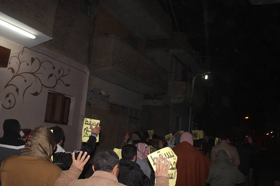 انطلقت تظاهرة ليلية بمدينة "الفيوم"، من مسجد دار الرماد الشرقي، تنديدًا بحكم العسكر، وجابت المسيرة شوراع المنطقة، وسط هتافات: "يسقط حكم العسكر"، "احنا المستقبل .. ياسيسي يا أهبل".