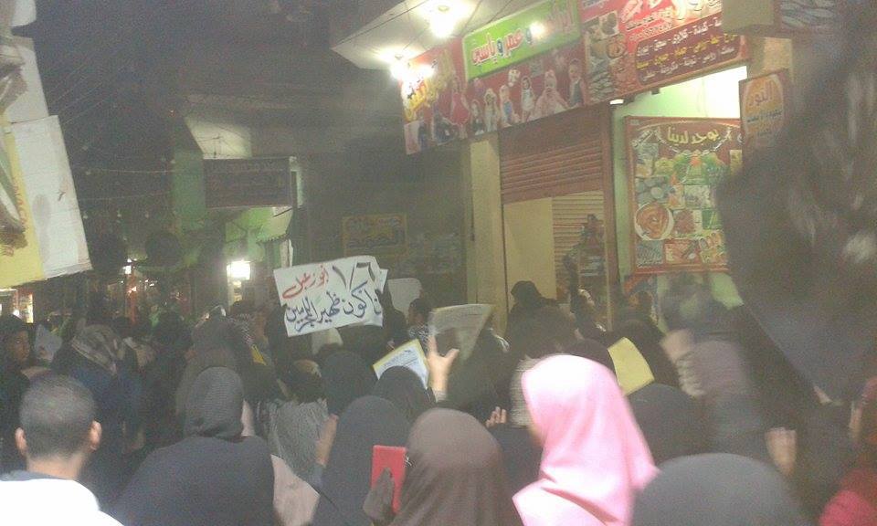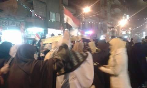 وفي "دريب نجم"، نظم الأهالي مسيرة ليلية، ردد المشاركون فيها هتافات: "يامعتقل يابطل .. سجنك بيحرر وطن"، "ياشهيد اتهنى اتهنى .. واستنانا على باب الجنة"، فيما أكدوا على استمرار الحراك الثوري حتى إسقاط الانقلاب.