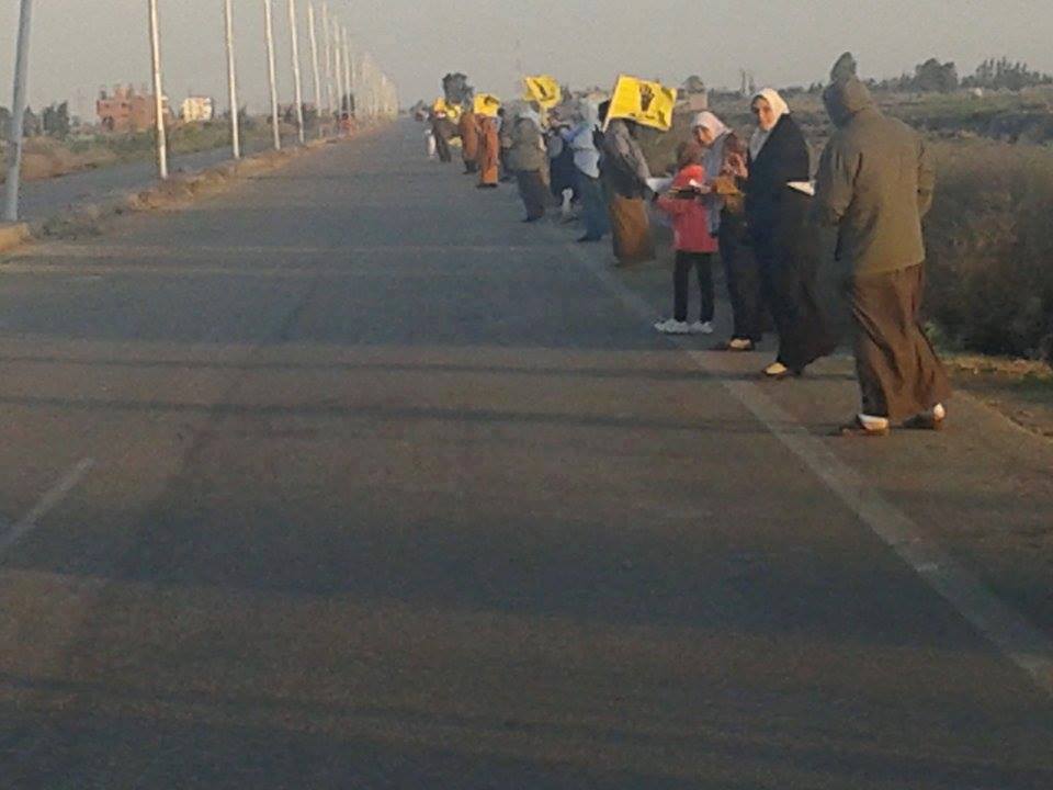 ورغم برودة الجو، نظم أهالي "عرب العيايدة"  التابعة لمركز "الخانكة"، سلسلة بشرية على طريق "المرج – الخانكة"، طالبوا فيها بمحاكمة قادة الانقلاب العسكري، كما نددوا بممارسات داخلية الانقلاب، وطالبوا بوقف الانتهاكات التي يتعرض لها المعتقلون بسجون العسكر.