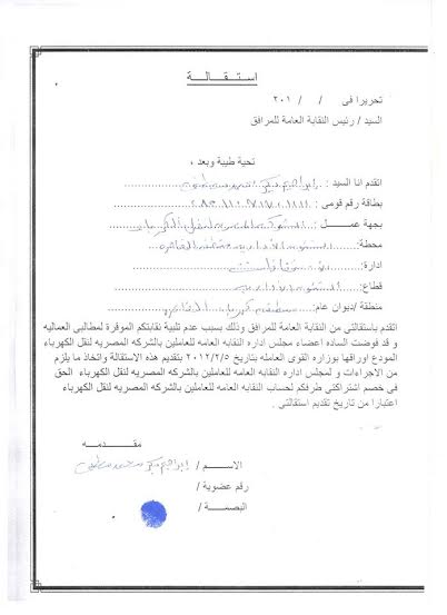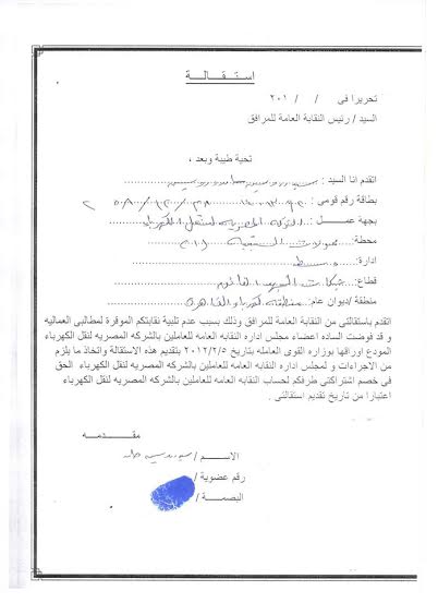 وأعلنت "القيادات العمالية المستقيلة" في بيان لها أنها وكلت النقابة العامة للعاملين بالشركة المصرية لنقل الكهرباء "المستقلة"، بإعلان نقابة المرافق باستقالتهم.