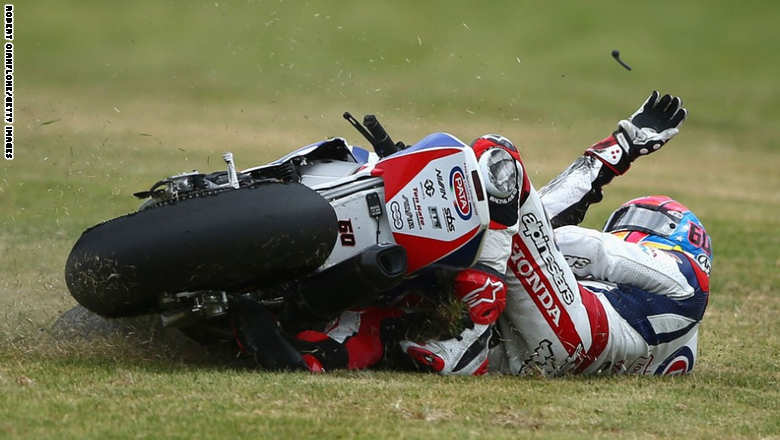 1 – مايكل فان دير مارك يسقط من على دراجته النارية في سباق “سوبر بايكز” الذي أقيم على جزيرة فيليب بأستراليا.