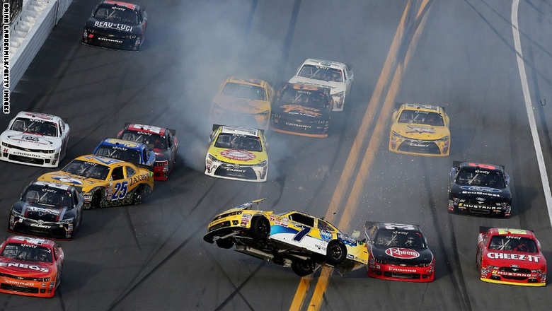 4 – سيارة السائق ريغان سميث تتقلب خلال سباقات “ناسكار إكس فينيتي” في فلوريدا، خرج سميث سليماً من الحادث الذي وقع في 21 فبراير.