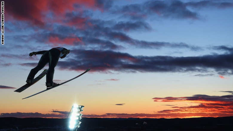 5 – المتزلج الأمريكي نيتا أنجلند يؤدي قفزة مرتفعة في بطولة نورديك العالمية للتزلج في 22 فبراير.