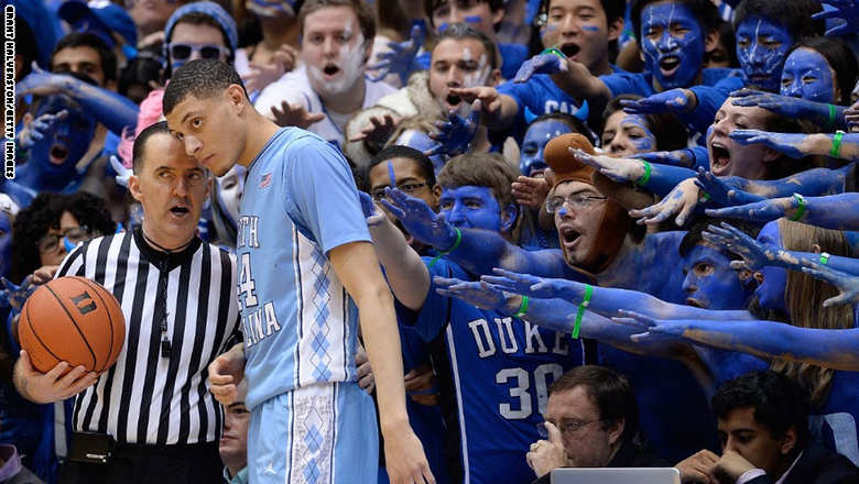 7 – مشجعو فريق “Cameron Crzies” ينادون لاعب فريق “North Carolina” قبل أدائه تمريرة من خارج الملعب، الأربعاء 18 فبراير.