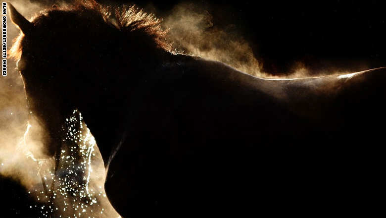 8 – بخار يتصاعد من حصان للسباق بعد رشه بالمياه في هرشام ببريطانيا بتاريخ 19 فبراير.