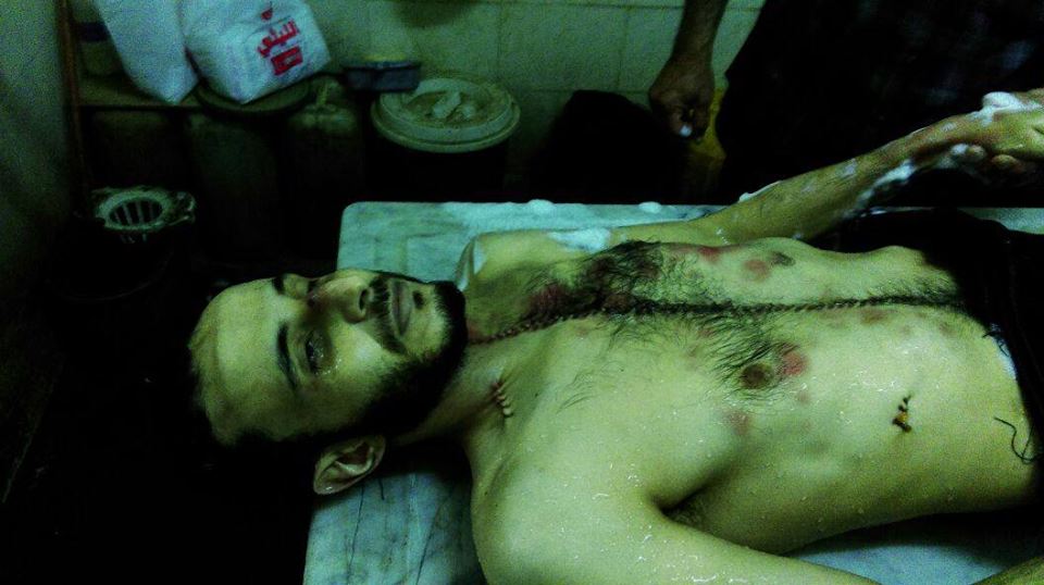 وتظهر الصور وجود آثار كدمات وسحجات في مناطق مختلفة من جسد الشهيد، خاصة في رقبته وصدره وظهره، فضلًا عن آثار ضرب في أنفه.