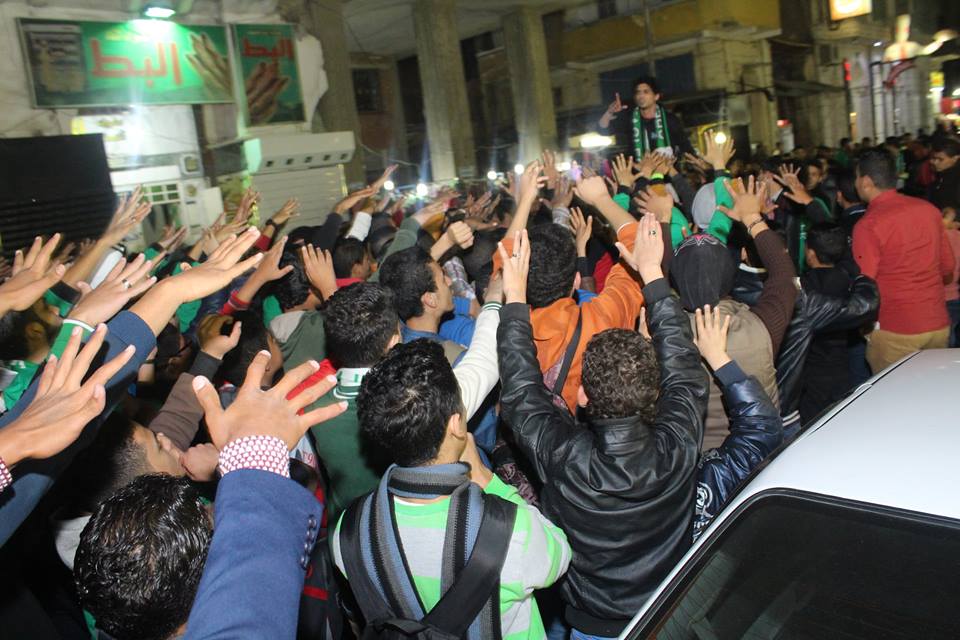 نظمت رابطة مشجعي النادي المصري أولتراس "الجرين إيجلز" مسيرة بالعشرات، انطلقت مساء اليوم الجمعة من أمام النادي المصري الكائن بشارع 23 يوليو بحي المناخ ببورسعيد