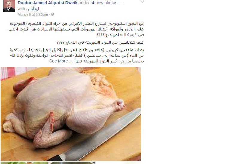 وعرض عبر صفحته الرسمية علي موقع التواصل الاجتماعي الفيس بوك الطرق المناسبة للتخلص من المواد المهرمنة بالدجاج.