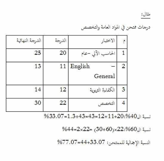 وقالت الوزارة إنه تمهيدا لإعلان ترتيب المتقدمين فى مسابقة 30 ألف معلم مساعد "أخصائى مساعد" طريقة احتساب الدرجات الخاصة باختبارات المسابقة، تم احتساب النتيجة حسب الجدول التالى: