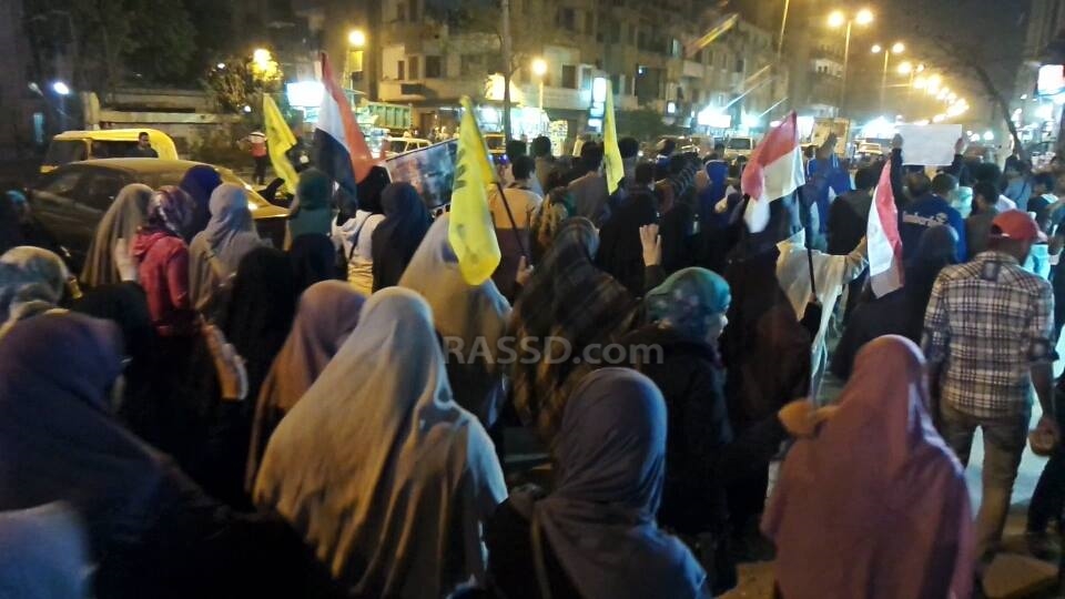 نظم رافضو حكم العسكر بمحافظة الجيزة مسيرة ليلية انطلقت من أمام التوحيد والنور بالطالبية، وطافت المسيرة شوارع الهرم، ورفع المشاركون خلالها شارات رابعة، وصورًا للمعتقلين، مطالبين بالإفراج عنهم.