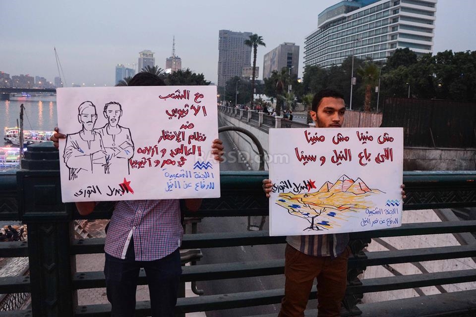 نظمت اللجنة الشعبية للدفاع عن نهر النيل وقفة على كوبري قصر النيل، في السادسة من مساء اليوم، برعاية البديل الثوري ضد الثورة المضادة، ورفع المشاركون لافتات كتب عليها: "قسما لن تسقط اليمن"، "اللي يبيع النيل في بلدنا لن يمر من قناتنا".