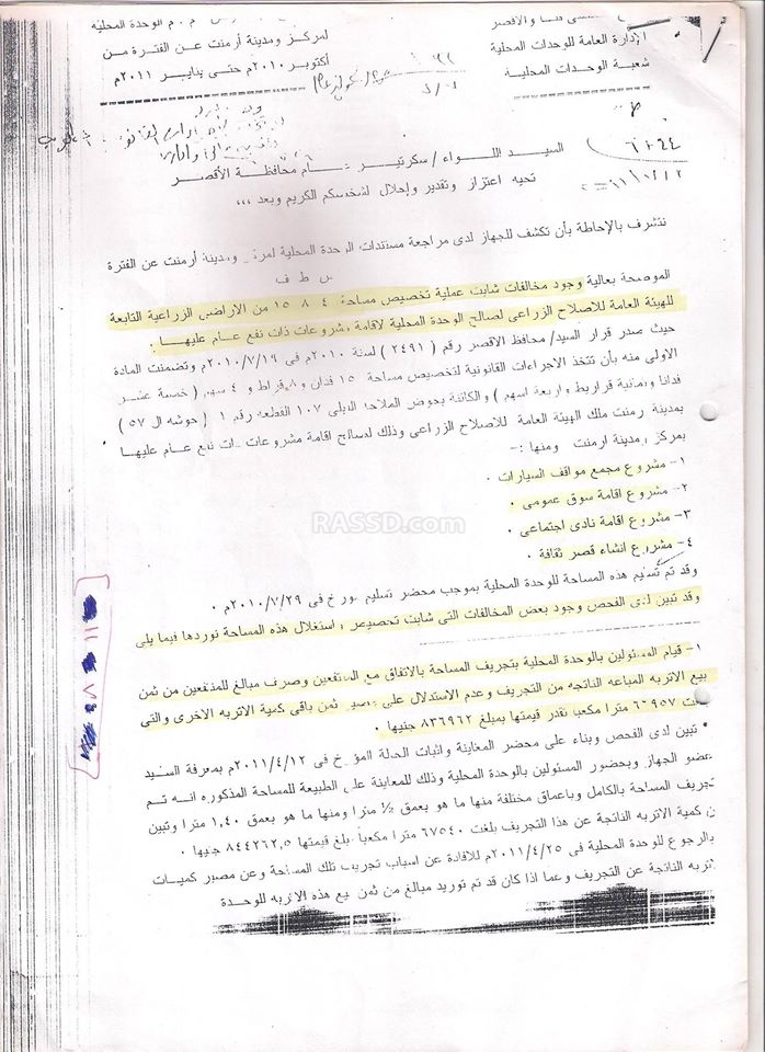 هذا ولم ترد أية مبالغ موردة خاصة ببيبع تللك الأراضي للوحدة المحلي، مما يدل على قيام هؤلاء الأشخاص بببع التربة لحسابهم الخاص.