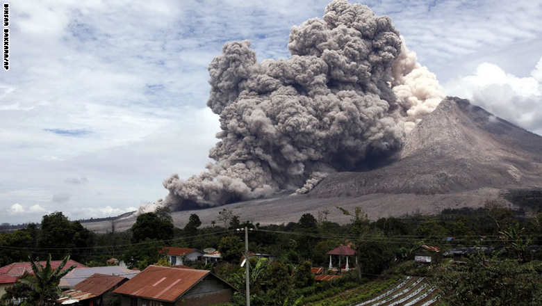 7. جبل سينابنج يطلق غباراً بركانياً شمال سومطرة بأندونيسيا بعد انخماده لأكثر من 400 عام بدأ نشاط البركان بشكل دوري عام 2010.