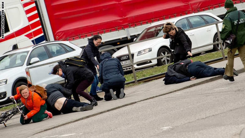 1. مشاة يطاحون أرضاً بعد تعرضهم لرياح قوية في ميونخ بألمانيا.