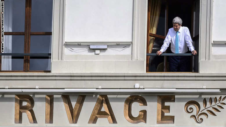 5. وزير الخارجية الأمريكي، جون كيري، يأخذ قسطاً من الراحة خلال المحادثات التي تمت بين إيران ومجموعة (5 +1) بخصوص البرنامج النووي الإيراني في سويسرا.