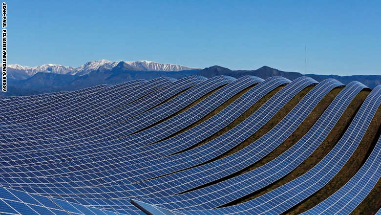 3. ألواح شمسية تمتد في حديقة بمنطقة لي ميز ، وهي أكبر حديقة لتوليد الطاقة الشمسية في فرنسا، وتحوي أكثر من 112 ألف لوح شمسي تغطي مساحة 200 هكتار.
