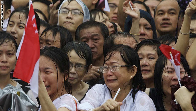 10. متفرجون في سينغافورة ينعون رئيس الوزراء لي كوان يو، المؤسس للبلاد خلال نقل جثمانه، بعد وفاته بعمر 91 عاماً، وهو الذي أعلن استقلال مدينة سينغافورة عام 1956 بعد أن كانت تابعة لماليزيا.