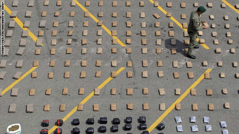 2. ضابط يحمل كيساً من الماريجوانا، بعد أن حصلت الشرطة الكولومبية أكثر من 4.1 طن من المخدرات من عصابة تهريب للمخدرات.