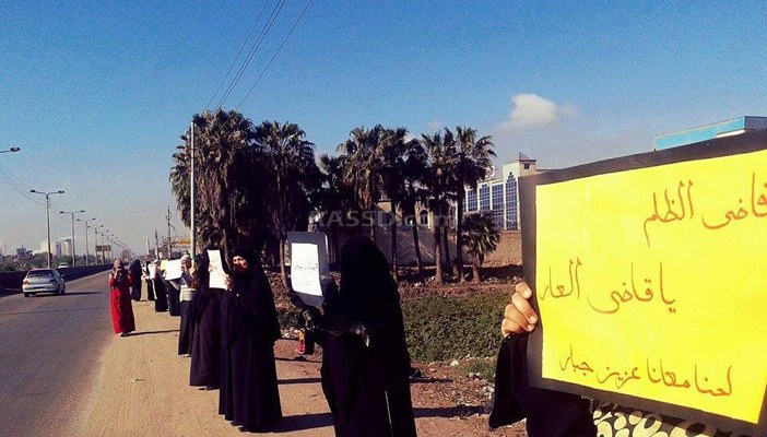نظم أهالي دمياط سلسلة بشرية على طريق دمياط – جمصة الزراعي، في مقابلة قرية أم الرضا، رفعوا خلالها لافتات تطالب بالإفراج الفوري عن المعتقلين.