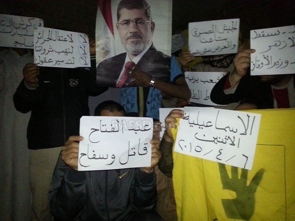 نظم عدد من أهالي مركز أبو صوير بالإسماعيلية وقفة ليلية ضمن فاعليات الأسبوع الثوري "الثورة لن تركع"، الذي دعا له التحالف الوطني لدعم الشرعية، حاملين أعلام مصر وشارات رابعة، وصورا للشهداء مطالبين بالقصاص لدمائهم.
