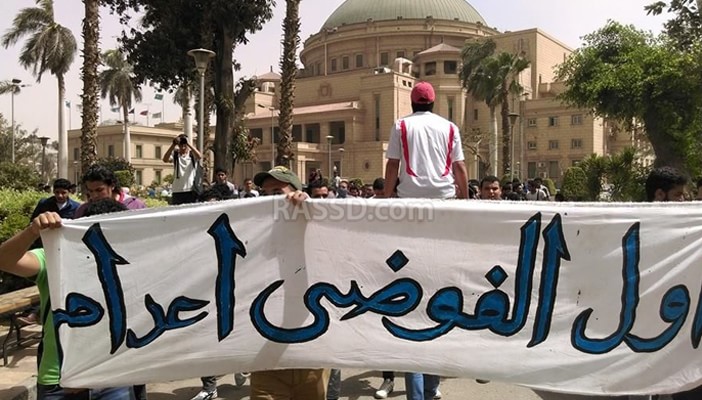 انطلقت مسيرة لطلاب جامعة القاهرة من أمام المكتبة المركزية وطافت أرجاء الجامعة، ندد خلالها الطلاب بأحكام الإعدام واعتقال الطلاب.