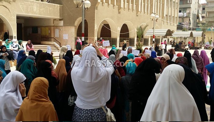 ونظمت حركة "طالبات ضد الانقلاب" بكلية الدراسات الإسلامية بالمنصورة، فعالية حاشدة ردًا على ما حدث أمس من اعتداء أمن الكلية بالضرب بالعصي على طالبتين أثناء دخولهما من البوابة الرئيسية.
