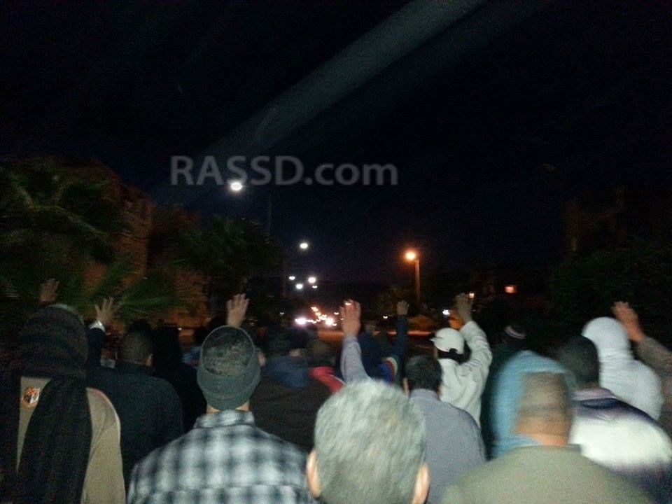 نظم عدد من أهالي بلطيم مسيرة ليلية حاشدةعلى رافد الطريق الدولي، رفع المشاركون فيها شارات رابعة، وصورًا للشهداء مطالبين بالقصاص لدمائهم.