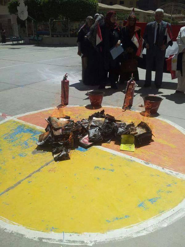 وقامت المدرسة، في صفحتها على «فيس بوك» بالاعتذار لأولياء أمور الطلاب، وقالت في بيان لها: «نعتذر للسادة أولياء الأمور والتلاميذ عما بدر من المسؤولين بمديرية التربية والتعليم، بمخالفة تعليمات الوزارة، وإحراق كتب التراث على اعتبار أنها كتب تحرض على العنف والكراهية والإرهاب».