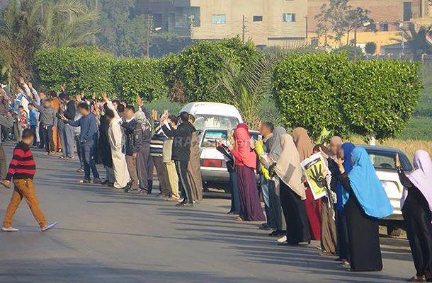 وفي قرية الأعلام التابعة لمركز الفيوم، نظم الأهالي سلسلة بشرية، امتدت على طريق الفيوم- القاهرة الصحراوي، ورفع المشاركون خلالها لافتات مطالبة بوقف إعدام الوطن وأخرى مطالبة بالإفراج الفوري عن جميع المعتقلين .