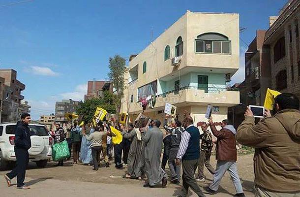 ونظم أهالي الحسينية مسيرة احتجاجية على طريق سعود، رفع المشاركون خلالها علامات رابعة وصورها وصور الرئيس محمد مرسي.