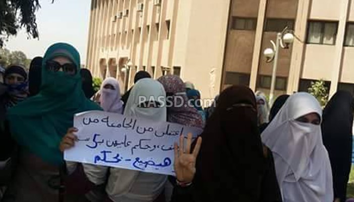 نظمت طالبات جامعة الأزهر بمدينة نصر بالقاهرة تظاهرة حاشدة، طافت أرجاء الجامعة وختمت أمام كلية الأسنان تنديداً بفصل الطالبات، فيما اقتحمت قوات الأمن الجامعة بمدرعاتها لفض المسيرة .