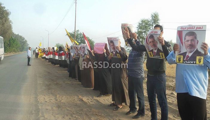 ونظم أهالي مدينة دسوق سلسلة بشرية على طول دسوق كفر الشيخ، منددين بمحاكمة الرئيس مرسي، مقدمين تحية إجلال وتقدير لصموده وجميع المعتقلين في السجون.