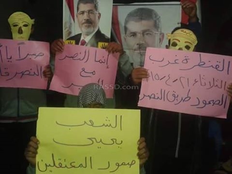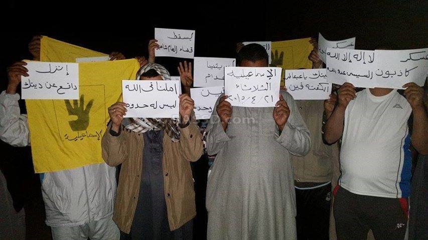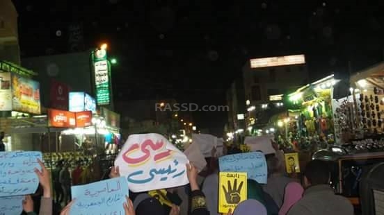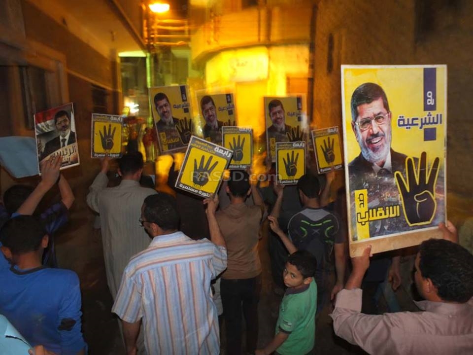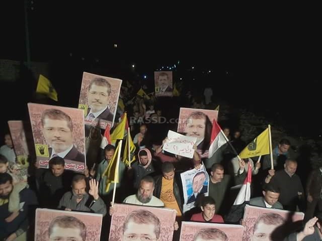 كما نظم الأهالي وقفة احتجاجية أخرى في منطقة أبو صير، حمل المشاركون فيها شارات رابعة، وصور الرئيس محمد مرسي، مطالبين بعودة المسار الديمقراطي.