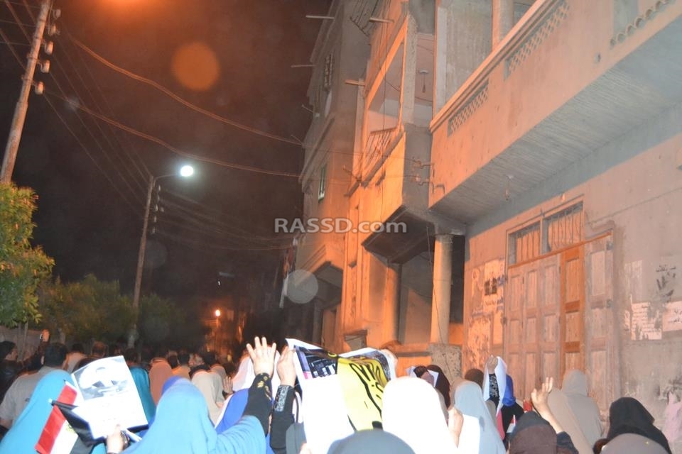 نظم رافضو الانقلاب بقرية منية سندوب بمركز المنصورة مسيرة ليلية حاشدة رفضا للأحكام الجائرة التي أصدرت بحق الرئيس محمد مرسي، طافت المسيرة عدة شوارع بالقرية وانتهت بوقفة أمام منزل المعتقل “حسام الدسوقي فارس” المحكوم عليه بالسجن المؤبد.