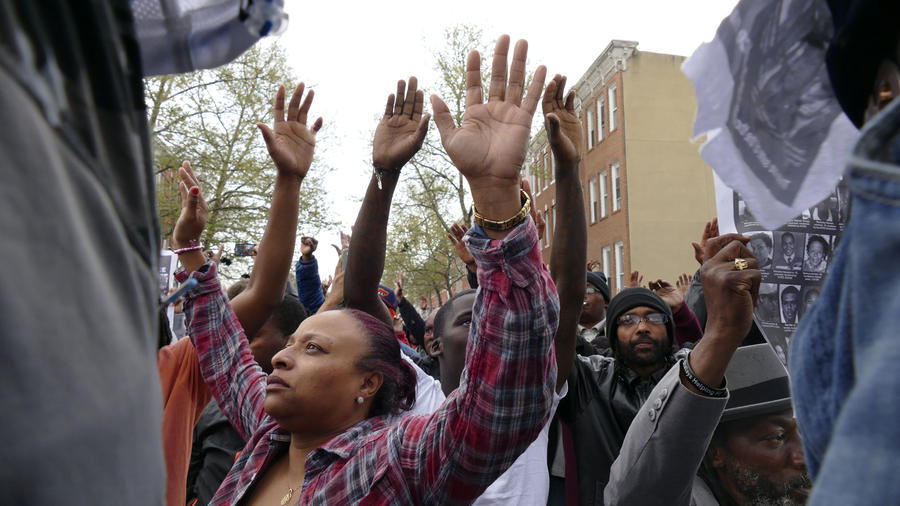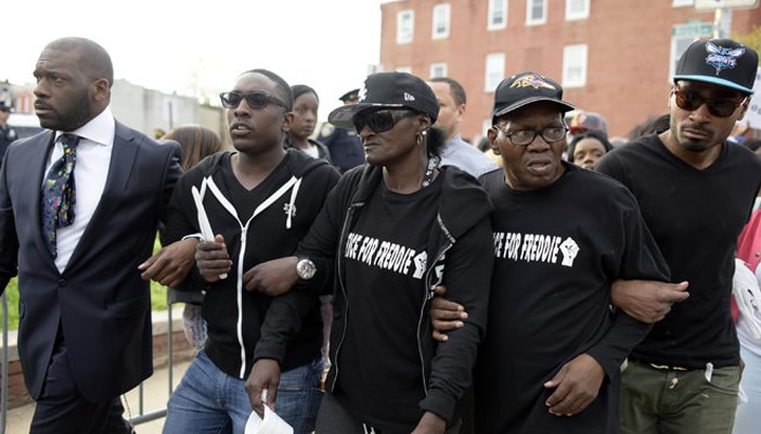 تظاهر مئات الأمريكيين بمدينة بالتيمور في ولاية ميريلاند احتجاجاً على وفاة الشاب الأسود فريدي جراي في المستشفى الأحد الماضي متأثراً بجراحه التي أصيب بها أثناء اعتقاله من قبل الشرطة الأمريكية الأسبوع الماضي، وقام المحتجون باشعال الشموع في الشارع الذي اعتقل فيه جراي.
