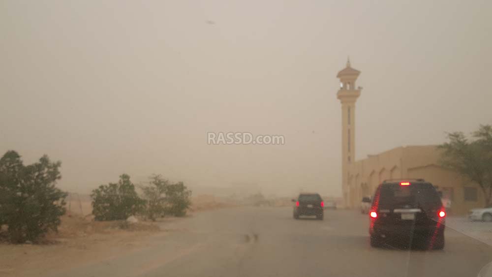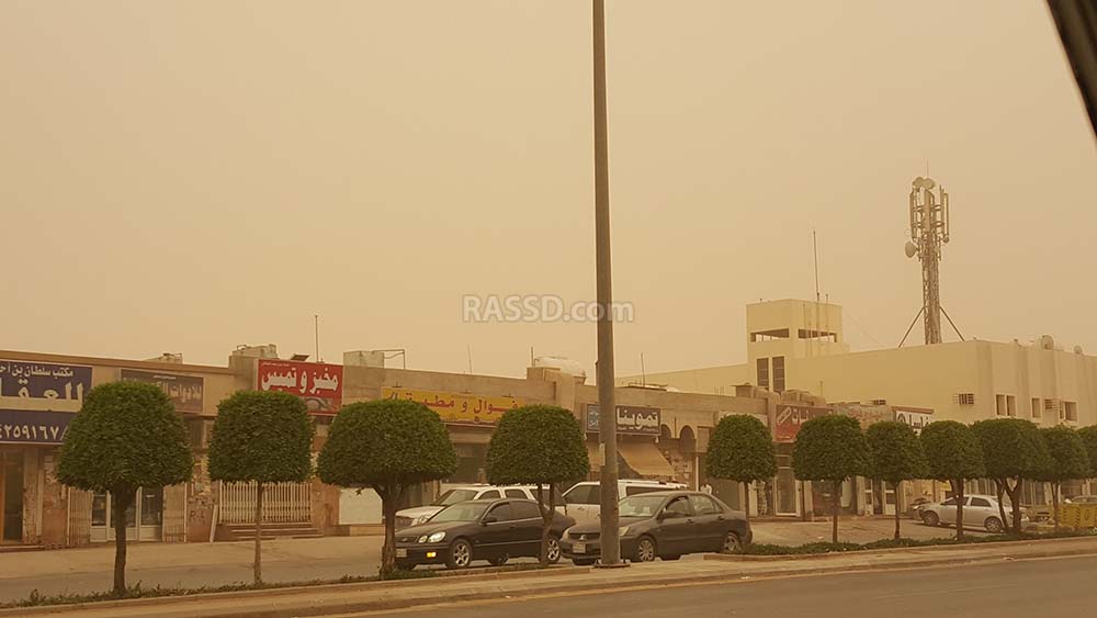 تشهد في هذه الأثناء عدد من مدن السعودية عاصفة رملية بدءت قبل غروب شمس اليوم ، تسببت بدورها في تدني مستوى الرؤية الأفقية وإثارة الأتربة الخفيفة .