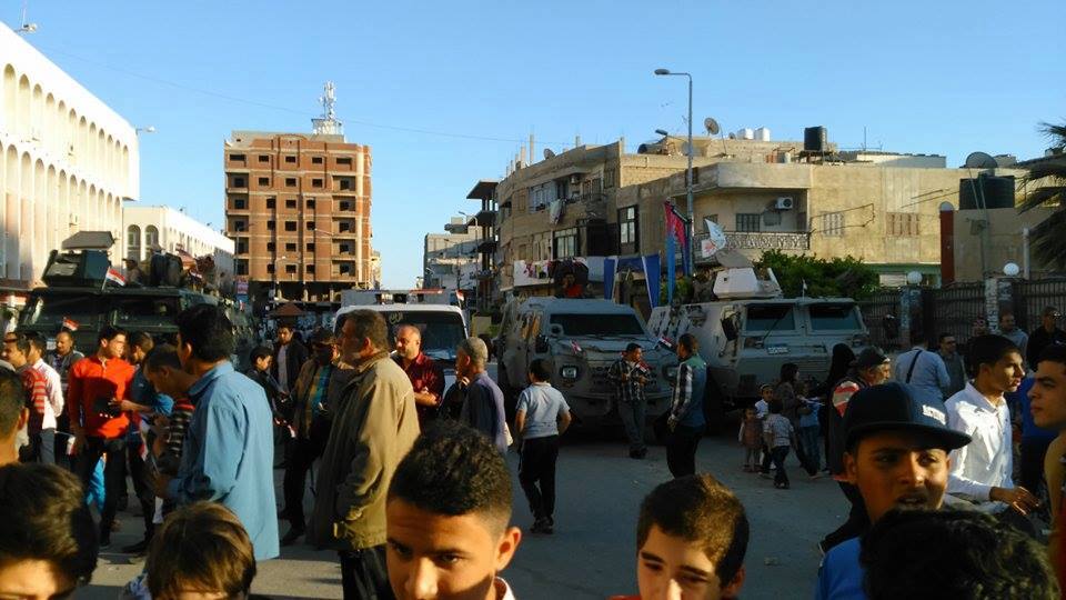 تظاهر عدد من أهالي مدينة العريش، قبيل المغرب، أمام كلية التربية في المدينة، احتجاجا على قرار مد الحظر 3 أشهر أخرى، واعتراضا على نعت أهالي سيناء بالإرهاب.