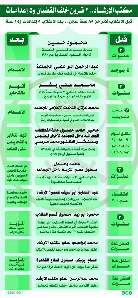 إنفوجراف.. مكتب الإرشاد: 3 قرون خلف القضبان و5 إعدامات (2 – 2)