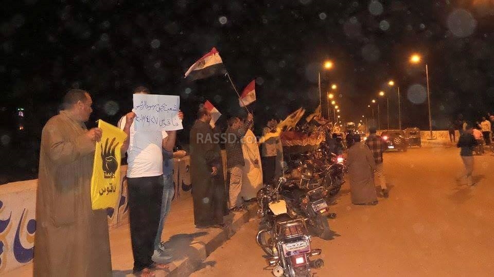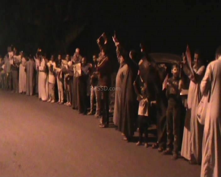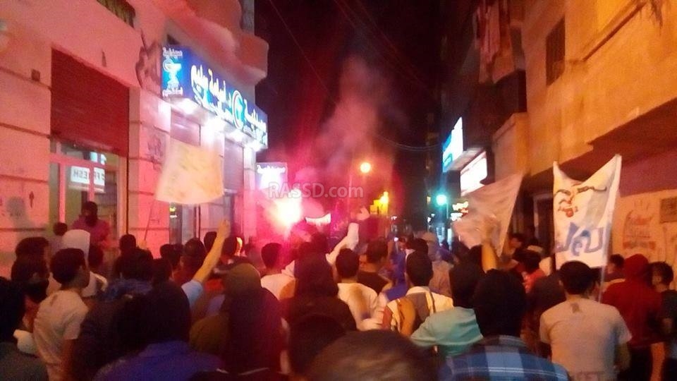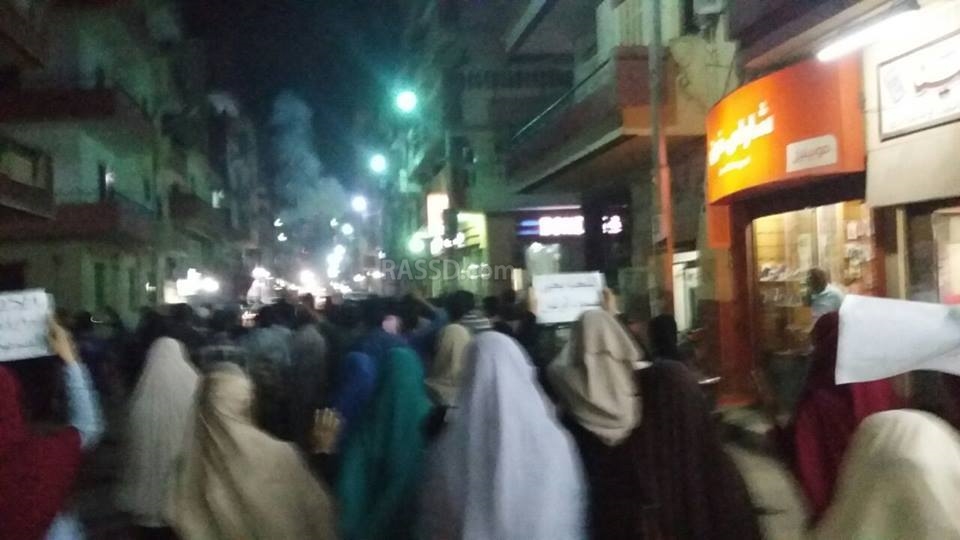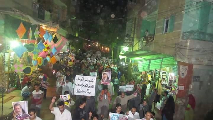 كما ندد معارضو الحكم العسكري بمدينة بني سويف في مسيرة ليلية انطلقت من منطقة الغمراوي، وسط هتافات منددة بمقتل 5 من المواطنين بعد تفجير رجال داخلية الانقلاب لهم.