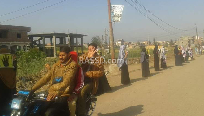 نظم أهالي الحامول، سلسلة بشرية بقرية غرب تيرة، رفعوا خلالها أعلام مصر وصور الرئيس محمد مرسى والمعتقلين وشارات رابعة العدوية، ولافتات تندد بجرائم سلطات الانقلاب بحق أهالي سيناء.