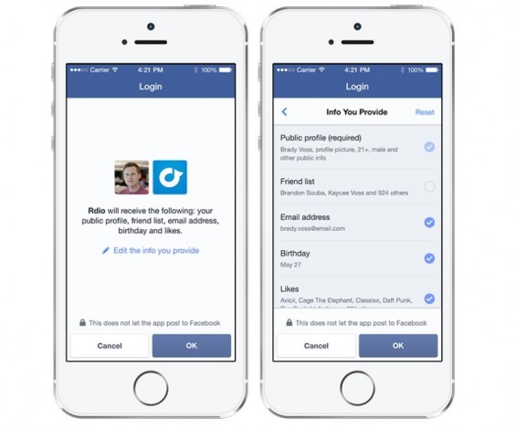وحتى الآن يتوجب على المستخدمين -عند تسجيل الدخول لأي تطبيق من خلال “فيسبوك”- الموافقة على مشاركة معلوماتهم الخاصة مع المستخدمين المتواجدين في ذلك التطبيق؛ من تاريخ ميلادهم وعنوان البريد الإلكتروني، بالإضافة إلى منح التطبيق الفرصة للوصول إلى قائمة الأصدقاء والصور الخاصة بالمستخدم على موقع التواصل الاجتماعي.