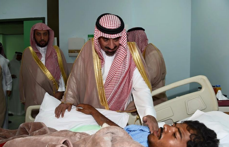 وأظهرت صور بثتها صحيفة المدينة المحلية على صفحتها على “فيسبوك”، الأمير وهو يمشي في شوارع نجران ويزور الجرحى الذين أصيبوا في القصف أمس.