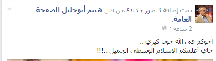 وأضاف- عبر منشور له على موقع التواصل الاجتماعي “فيس بوك”- “خلت المساجد من الممنوعين من الخطابة في العالم الإسلامي، وأنا أحدهم، ليحل محلنا جون كيري! حتى يعلم الناس “الإسلام المعتدل” بعد أن مُنع أمثالنا من تعليمهم “الفهم المتطرف للإسلام”.