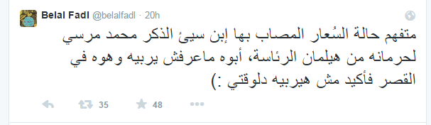 شهدت مواقع التواصل الاجتماعي حربا كلاميا بين المحامي أسامة مرسي، نجل الرئيس محمد مرسي، والكاتب الصحفي بلال فضل، بسبب هجوم الأخير على مرسي، ووصفه من يطالبون بعودة مرسي إلى الحكم بـ”الهبل”.