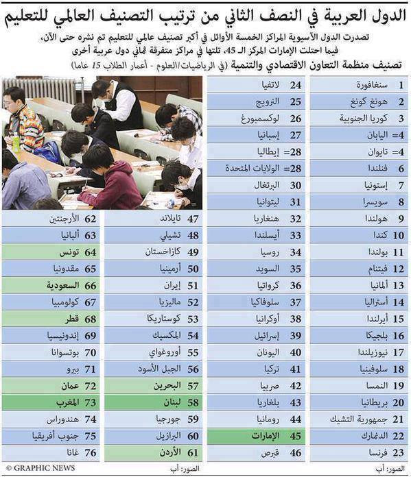 أظهر تصنيف دولي للتعليم، تأخر الدول العربية في مستوى التعليم وخروج مصر منه، حيث احتلت دولة الإمارات العربية المرتبة الـ 45 في الجدول، والأولى عربيًا.